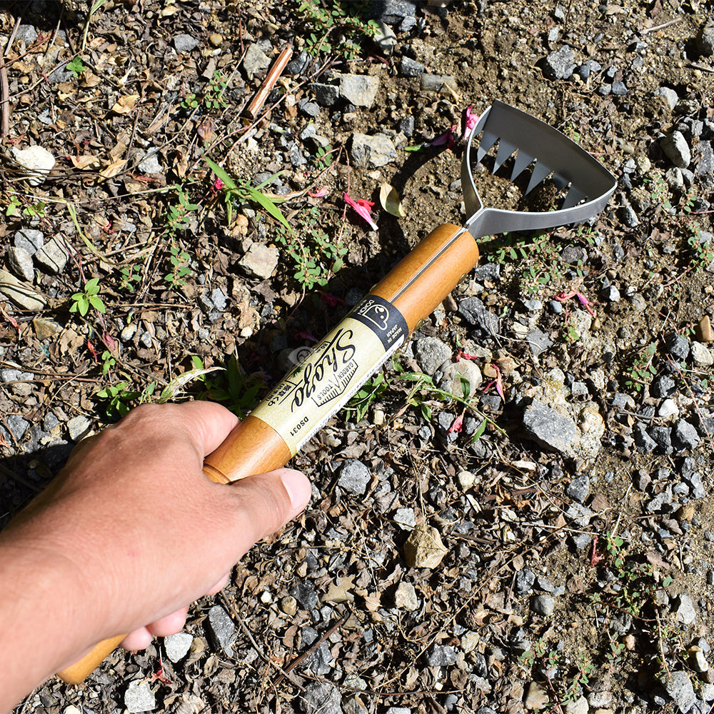 頑固な雑草も根ごと除草できる。雑草抜きから土慣らしまで幅広いお庭作業ができます。角刃でキワ除草から種まき溝づくりもでき、余すところなく全体を活用できます。刃は刃物炭素鋼本焼仕上で丈夫。曲がったりすることありません。柄は片手タイプですので中腰での作業に使い易いです。アースカラー『オリーブ』色でお洒落でカッコいいので楽しく除草できます。
