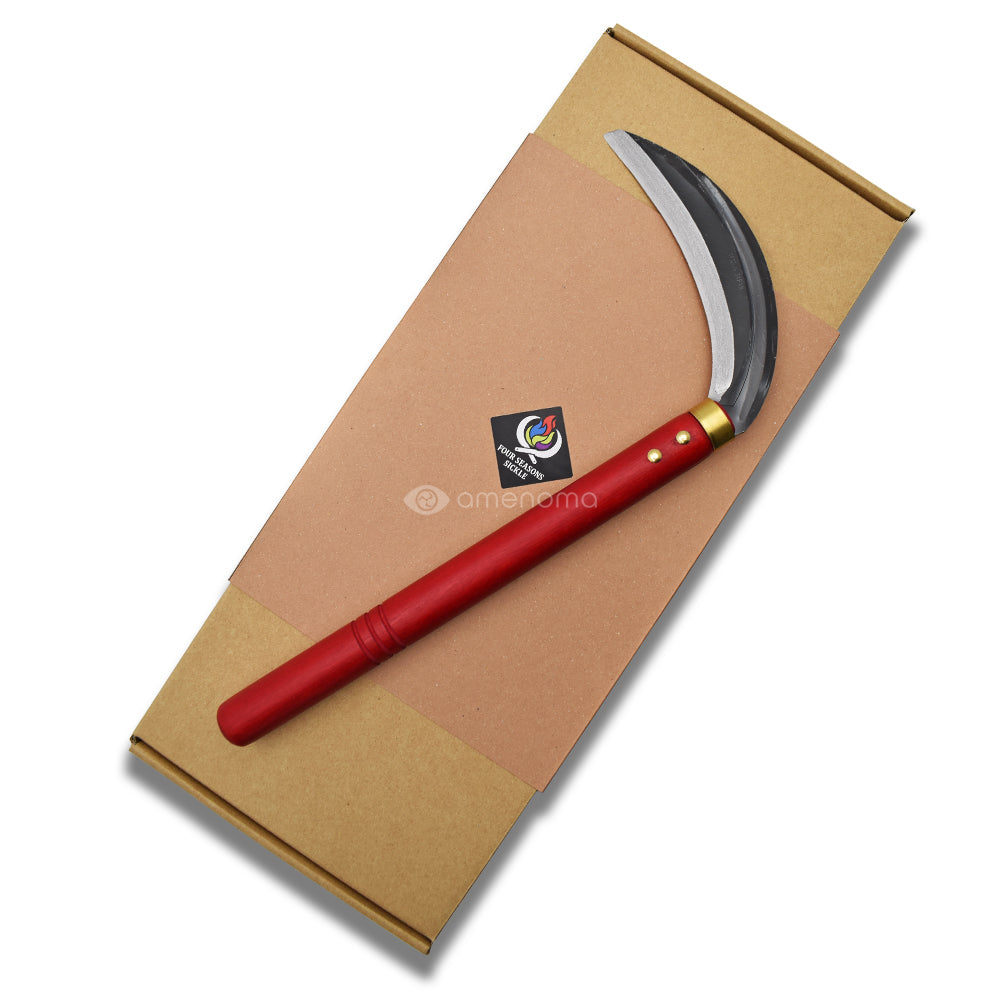『FOUR SEASONS SICKLE』は季節と用途を「色」で表し、見ただけで使う時期と役割が分かるをコンセプトに製作された鎌です。釘や口金を真鍮で煌びやかに着飾り専用箱で園芸好きな大切な方や自分へのGIFTとしておすすめです。