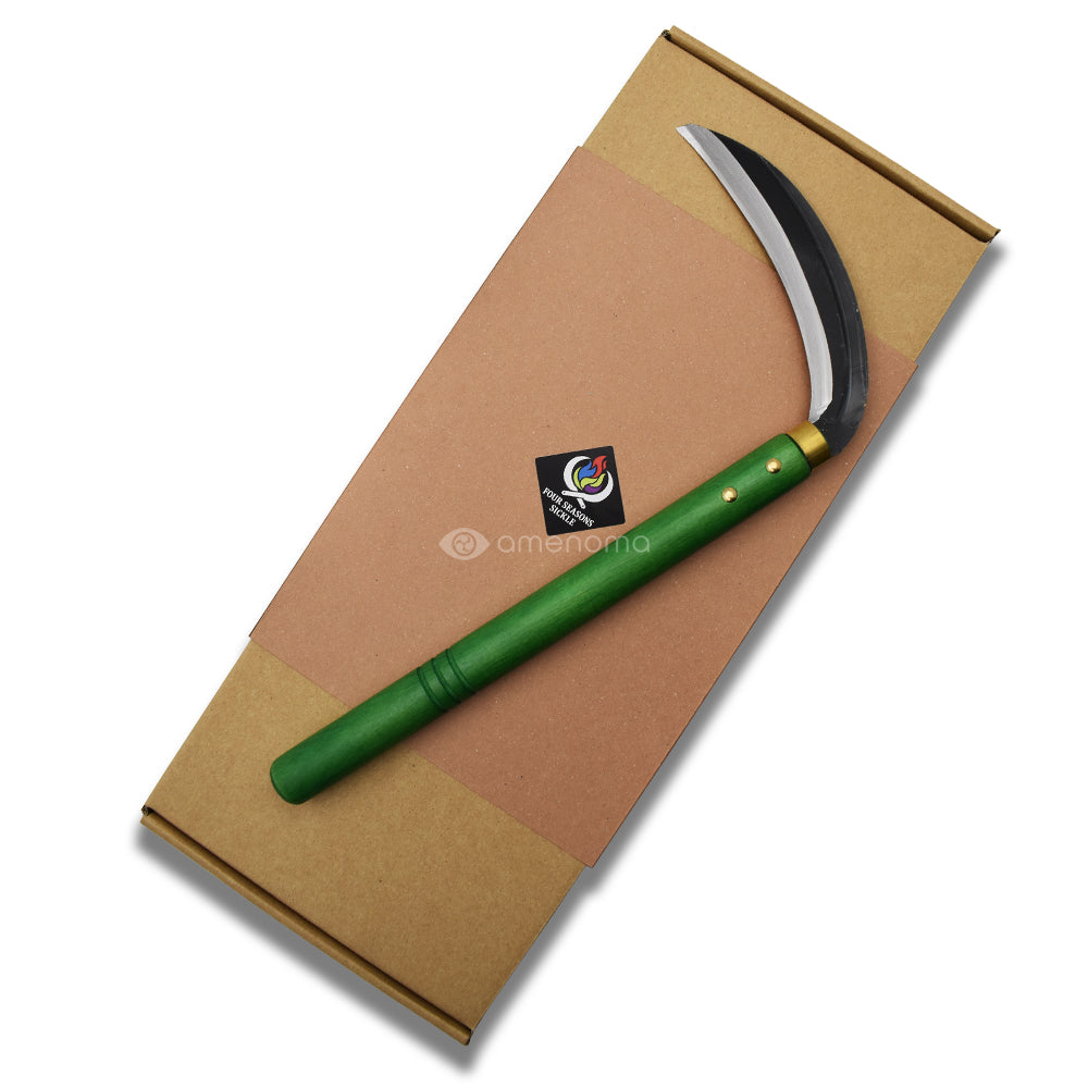 『FOUR SEASONS SICKLE』は季節と用途を「色」で表し、見ただけで使う時期と役割が分かるをコンセプトに製作された鎌です。釘や口金を真鍮で煌びやかに着飾り専用箱で園芸好きな大切な方や自分へのGIFTとしておすすめです。