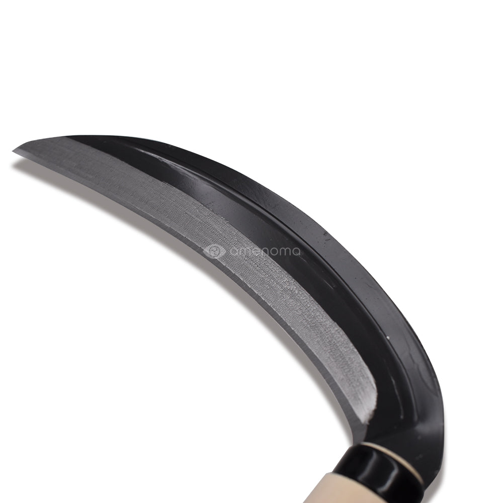 播州鎌の特徴『スキ仕上』。刃のシノギ部をえぐるように削り、カットした草が離れ易い仕組みになっており広範囲除草が楽々におこなえます。spring/summerは薄鎌タイプ。播州鎌の特徴『スキ仕上』。刃のシノギ部をえぐるように削り、カットした草が離れ易い仕組みになっており広範囲除草が楽々におこなえます。薄刃の為強度面に不安あります。すすきや太い茎を除草に刃が負けてしまう恐れありますのでその際は中厚鎌がおすすめです。