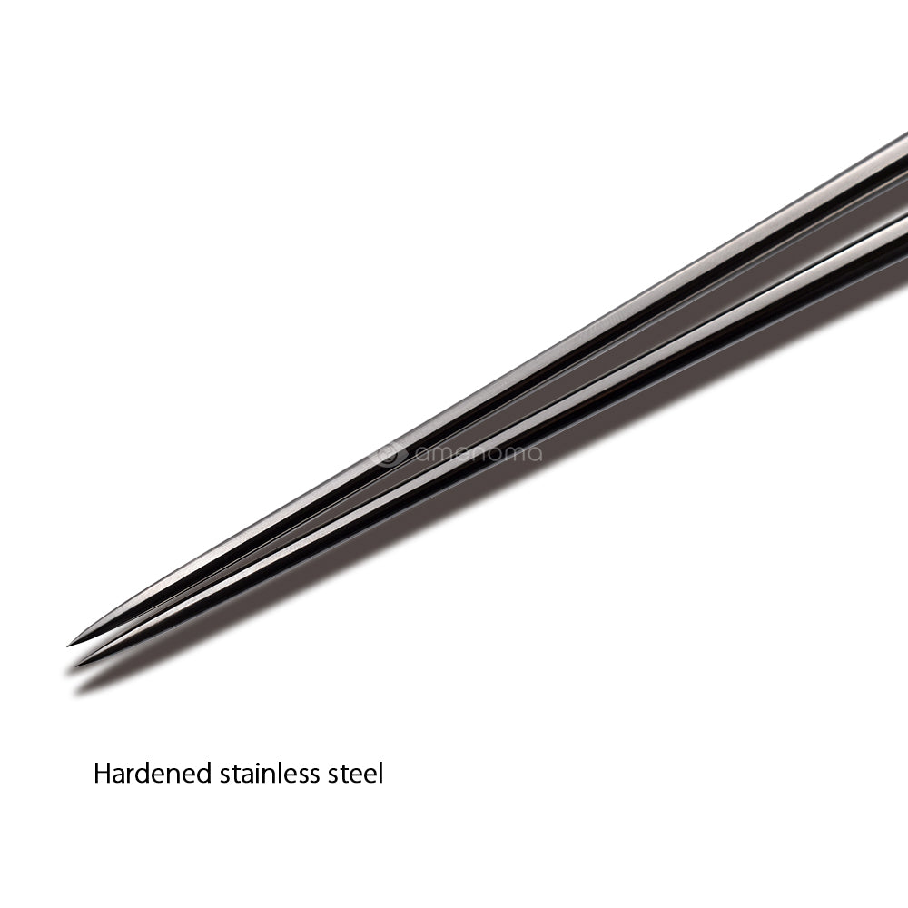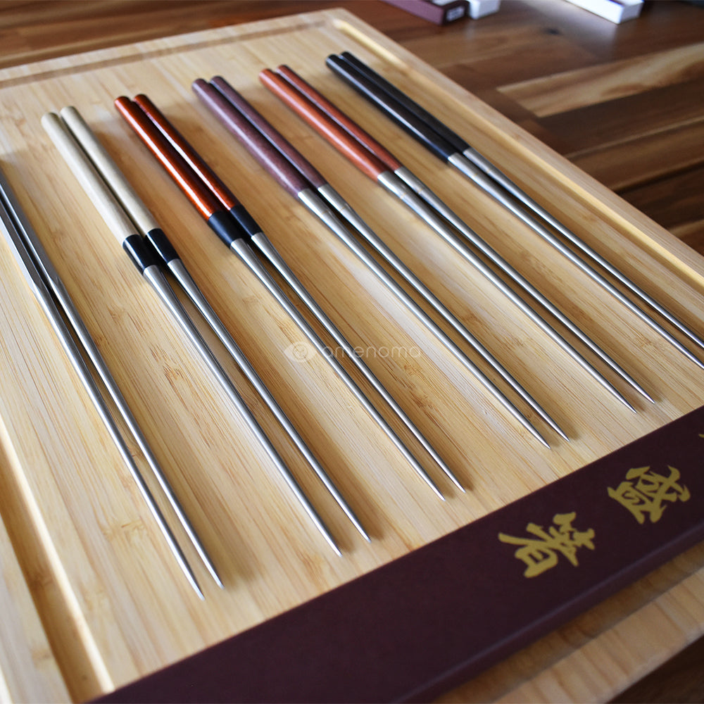 The tips of the chopsticks are made of stainless steel and are rust resistant and have a durable finish. The texture of the ebony pattern is wonderful and the weight is well balanced. The tips of the chopsticks have a tapered shape that is easy to control with your fingertips. Available in 4 sizes from 135mm to 180mm.